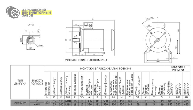Електродвигун АІР225M4 55 кВт 1500 об/хв IM1001 (IM1081) лапи