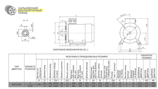 Електродвигун АІР250M4 90 кВт 1500 об/хв IM1001 (IM1081) лапи