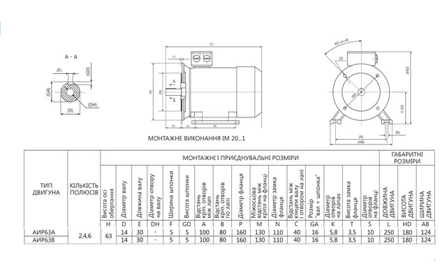 Електродвигун АІР63В6 0,25 кВт 1000 об./хв IM1001 (IM1081) лапи